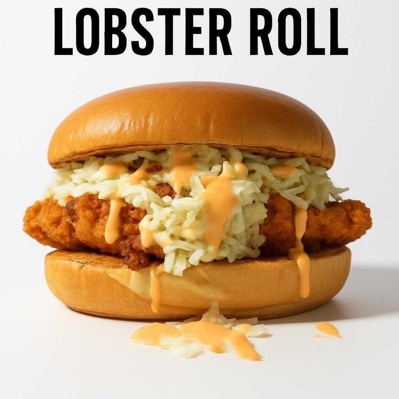A Southern twist on a Northern dish. Deep fried lobster tail on a buttered tosted bun, topped with slaw and a drizzle of Dive sauce.